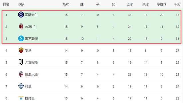不得不说,国米确实太争气了,在榜首2强都爆冷的状况下,他们没有让不测发作,而这场成功,也让国米反超对手,在意甲积分榜登顶。截至目前,国米以1分的优势排名第一,而AC米兰和那不勒斯则退居第二和第三位,不过榜首3强的差距只要2分,接上去意甲争冠还有很大的变数。